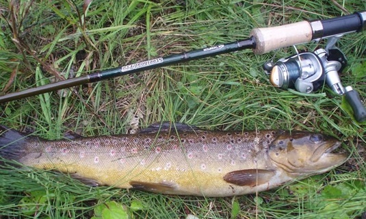 Используется для ловли крупной форели на большом расстоянии от берега. Удилище: подойдёт и спиннинговое, средней длиной 3 метра, или фидерное (от 3 до 4 м.) Катушка должна вмещать 150 метров лески диаметром 0,28 – 0,30 мм. Грузило должно легко сниматься, чтобы можно было быстро заменить его. Вес грузила подбирается в зависимости от конкретных условий ловли — течения, дальности заброса и пр.
