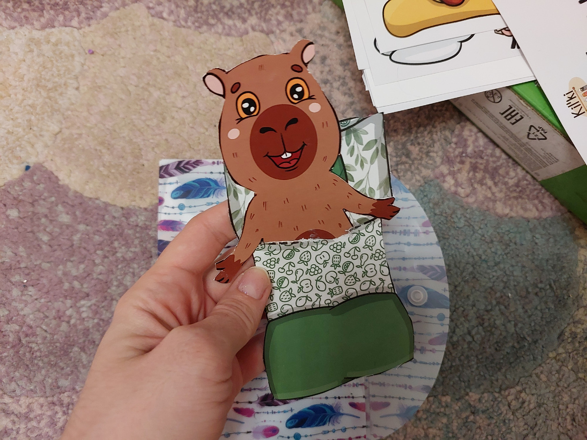 Не смотря на то что капибары сейчас очень популярны, сильно много игр и развлекаловок с ними нет. У нас в коллекции мягкие игрушки, капибара ходящая, три комикса с капибарой да и все. Здесь мы можем вырезать капибар, поодевать их в разные костюмы и уложить в кроватку. Набор очень яркий и красочный, бумага плотная, для любителей капибар - просто отличный вариант. Набор пока в процессе эксплуатации:) Продолжаем серию статей: чем заняться дома? Наш досуг - идеи для вас. Если вы не нашли такой набор, но вам тоже очень хочется, пишите подскажу как он точно называется.