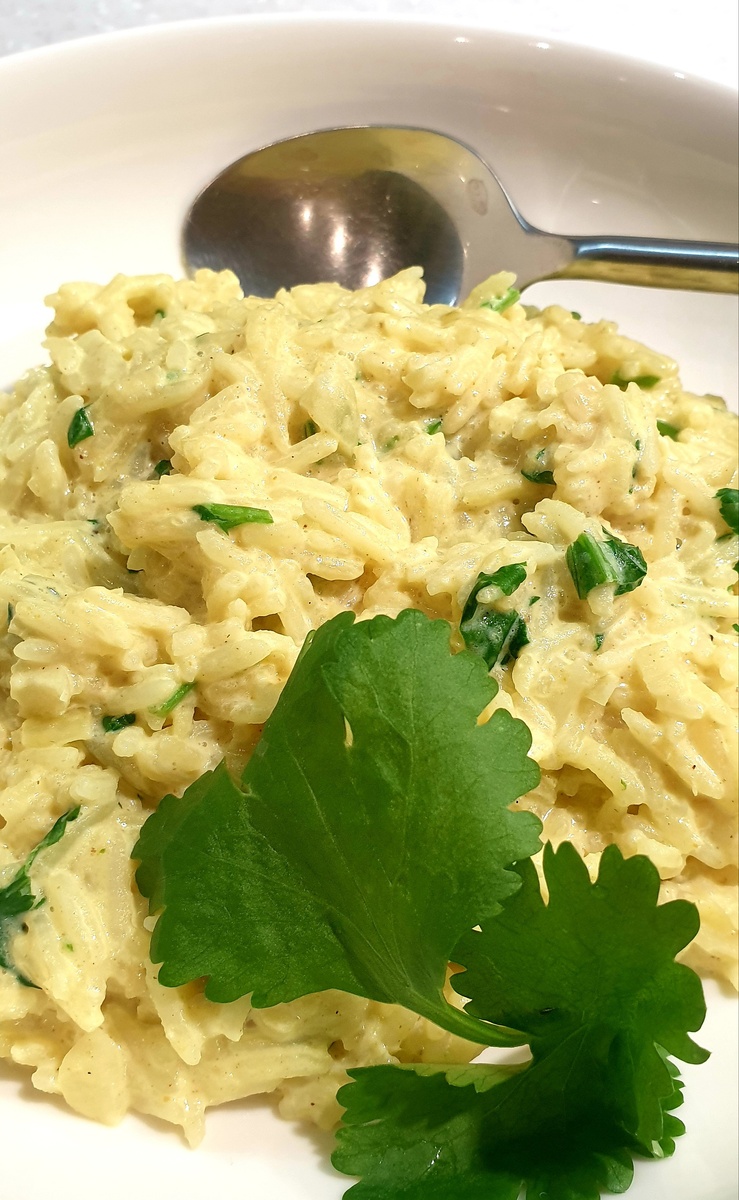 Друзья, всем привет. Сегодня готовлю на гарнир рис с карри и сливками. Когда-то, когда моя дочь была помладше, она попросила меня приготовить на ужин "жёлтенький рис", я не сразу поняла о чем речь и пришлось допытываться у нее, какой это рис она имеет в виду. Оказалось рис с карри и сливками. А "жёлтенький" он потому что приправа карри его окрашивает в жёлтый цвет. Удивительно, но у нас в семье это шуточные название прочно прижилось, мы все теперь называем это блюдо не иначе как "жёлтенький рис"))) Рис отварить в подсоленной воде до готовности. В небольшом количестве подсолнечного масла обжарить мелко нарезанный лук и чеснок до прозрачности. Кинзу мелко нарезать. В обжаренный лук с чесноком отправить рис, перемешать. Добавить карри и сушеный имбирь по вкусу. Перемешать. Добавить сливки. Количество сливок регулируйте по своему вкусу, они достаточно быстро впитываются в крупу, поэтому я добавляю в несколько приёмов и смотрю, чтобы консистенция получилась не очень густа