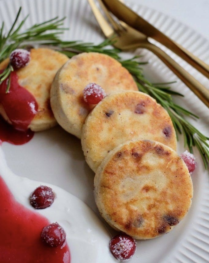 6. Красивая тарелка, сметана и клюквенное варенье!
