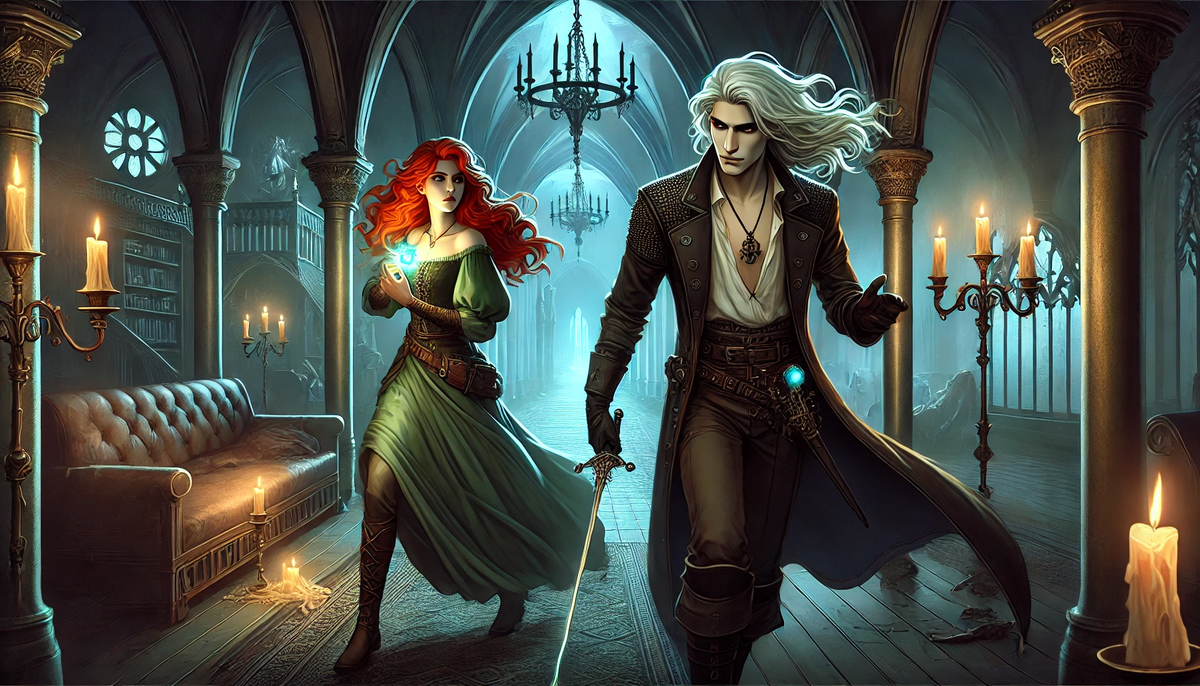 Алистер быстро вскочил, не успев отдышаться, быстро забрал перстень, и схватил девушку за руку, поднял её посох и потащил из крипты.
