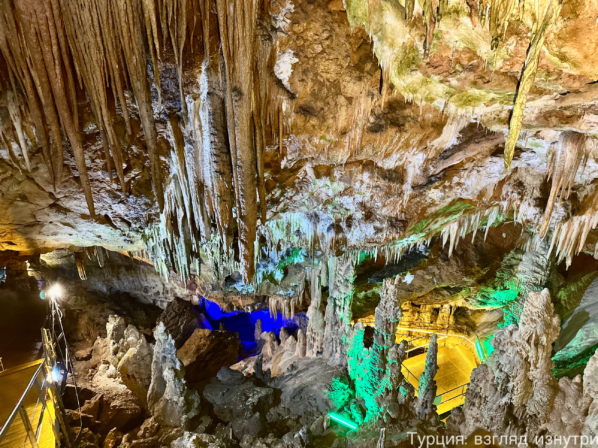 В 70 километрах от города Бурсы, в провинции Инегёль, скрывается удивительная пещера Ойлат. Это уникальное природное сооружение, спрятавшееся в живописной глубине каньона, поражает своим величием и загадочностью. Пещера Ойлат — вторая по величине пещера в Турции. Она образовалась на линиях тектонических разломов около трёх миллионов лет назад. Длина пещеры составляет 750 метров, и состоит она из двух уровней. Эта горизонтальная пещера, словно подвешенная на склоне каньона, производит незабываемое впечатление. Вход в пещеру невольно вызывает ассоциации с пещерой из сказки об Али-Бабе и сорока разбойниках. Но, если в сказке каменная дверь, открывающая вход в пещеру с сокровищами по тайному заклинанию, то вход в пещеру Ойлат - каменная арка, созданная самой природой. Внутри пещеры возникает ощущение, что входишь в магическое пространство, созданное самой природой, стены которого хранят множество тайн. Войдя внутрь пещеры, попадаешь в просторный каменный зал, который кажется вратами в