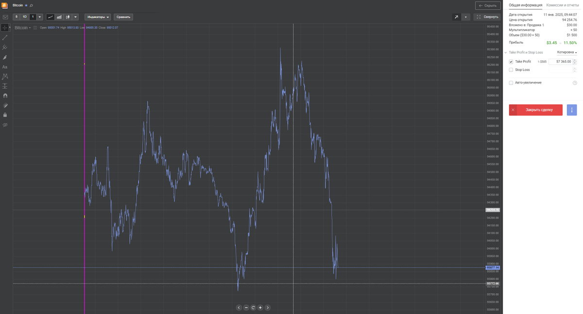 Примерно на одном с вами уровне тоже открывала сделку на продажу. Плечо большое, больше 500. Это Либертекс. У меня 11%.