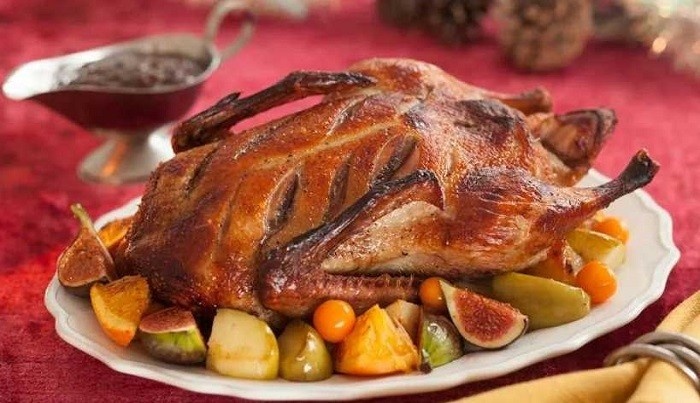 Простой рецепт приготовления утка с яблоками и черносливом, запечённой без фольги