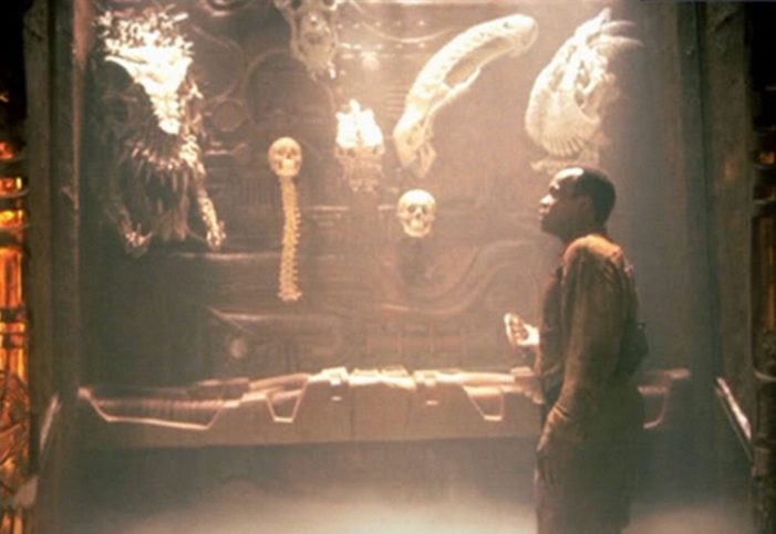 Это был череп ксеноморфа. В тот момент франшизы Чужого и Хищника окончательно пересеклись, а идея их общего мира получила первый реальный намек. Позже эта концепция получила импульс: комиксы, видеоигры и, конечно, фильмы Чужой против Хищника развили идею до полноценного кроссовера.