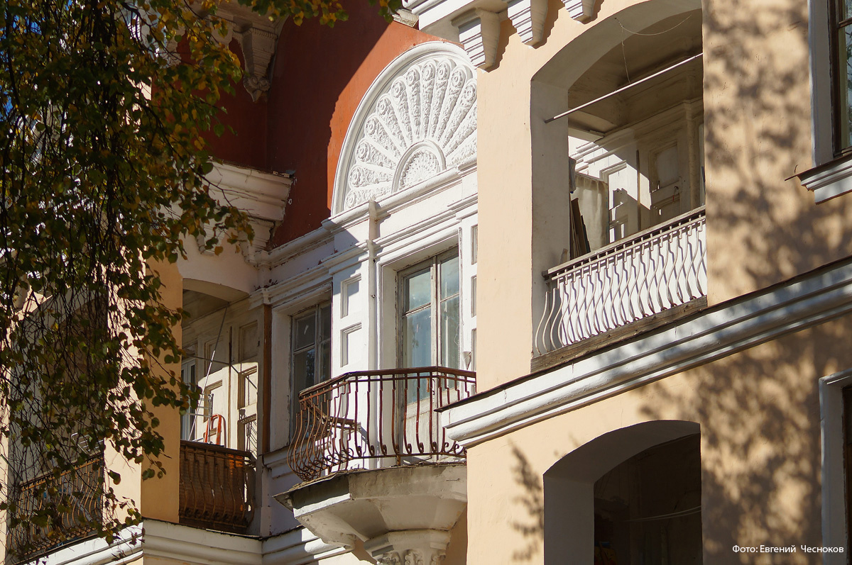 Улица Гончарова, 13 - жилой дом (1951) привлекает внимание кирпичными узорами на фасадах
