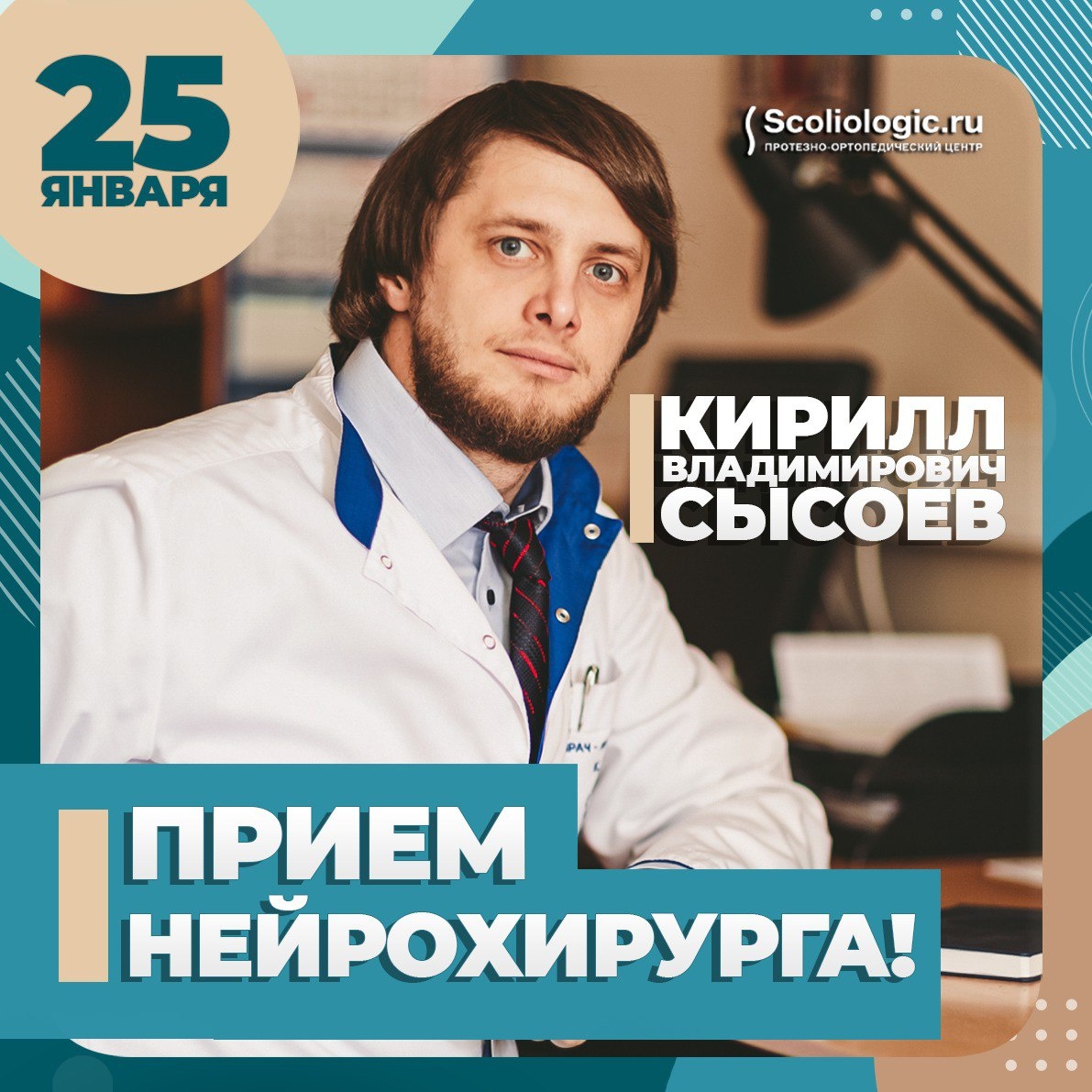 Открыта запись на 25 января к Кириллу Владимировичу Сысоеву – ведущему научному сотруднику отделения нейрохирургии для детей Национального медицинского исследовательского центра им. Алмазова, врачу высшей категории, к.м.н. Кирилл Владимирович проконсультирует пациентов по таким сложным вопросам, как: Спастика при ДЦП – селективная дорзальная ризотомия Спина Бифида: спинномозговые грыжи, липомы, диастематомиелия – устранение фиксации спинного мозга Опухоли головного и спинного мозга Гидроцефалия и внутричерепные кисты Краниосиностозы, деформации черепа Сирингомиелия, аномалия Киари, аномалия Денди-Уокера Эпилепсия Для записи обращайтесь по телефону 8 (800) 707-71-21. Прием пациентов пройдет в протезно-ортопедическом центре Scoliologic.ru по адресу: Санкт-Петербург, Выборгское шоссе, д. 64.