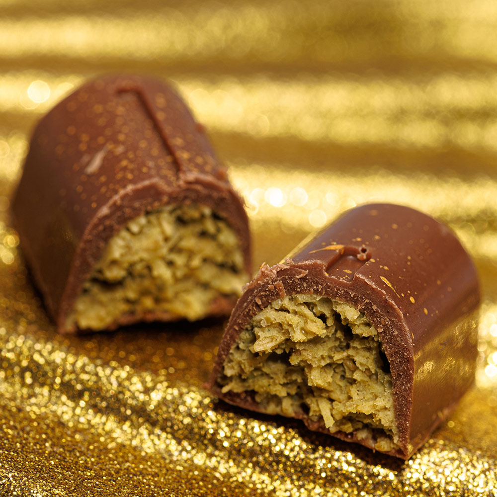 Шоколадный рекомендация: на ваш выбор – апельсиновые корочки в горьком шоколаде "Здоровья!" или сухофрукты в шоколаде финик "Удачи!" с их роскошным вкусом. Это подчеркнет вашу царственную натуру.
