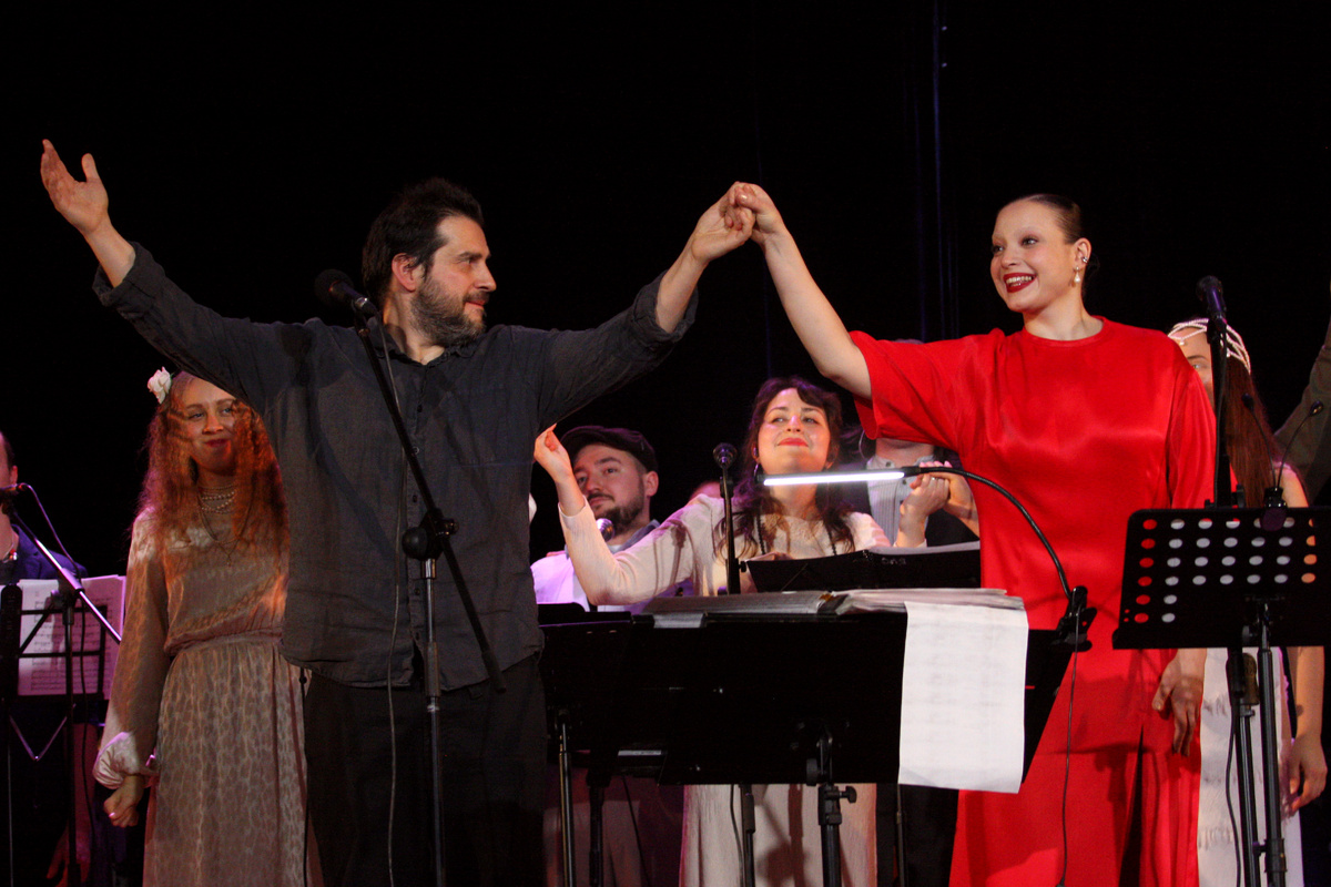 Все-таки и поклонникам, и творениям Петра Налича очень повезло: Петр может сам лично, своими силами, без посредников, не дожидаясь официального признания, желания других творческих людей, финансирования и режиссирования, представить любое свое произведение. Не только песню, сюиту, саундтрек, но и, как показала практика, крупную форму тоже. Еще в конце декабря 2023 года Петр обмолвился о том, что «Ваньку, Пташечку и Тельняшечку» собирается ставить театр на Таганке. Но театральные проекты – дело многотрудное и небыстрое. Прошел год, пока только наконец поставлено в план. На фоне всего этого объявленная концертная премьера была как манна небесная – и оправдала все самые высокие ожидания. Ну в самом деле, кто лучше Петра споет всех мужских персонажей, исполнит самые лирические романсы, самые разудалые революционные распевки, прочитает самые скоростные скороговорки? Кто лучше него, автора записи, выполнит роль дирижера и музыкального руководителя? Тем более когда можно играть спектакль вместе с участниками записи, Дарьей Антонюк и Германом Могилевским. Но самое замечательное, что выяснилось уже в зале ЦДА (хотя было вполне ожидаемо), – это еще поди сыграй лицом и интонациями так ярко и эмоционально, как Петр и Дарья, а также «примкнувший» очень артистичный хоровой ансамбль «Петр Валентинович». По факту получилось не концертное исполнение, а самый настоящий полноценный спектакль, безо всяких поправок и поблажек.