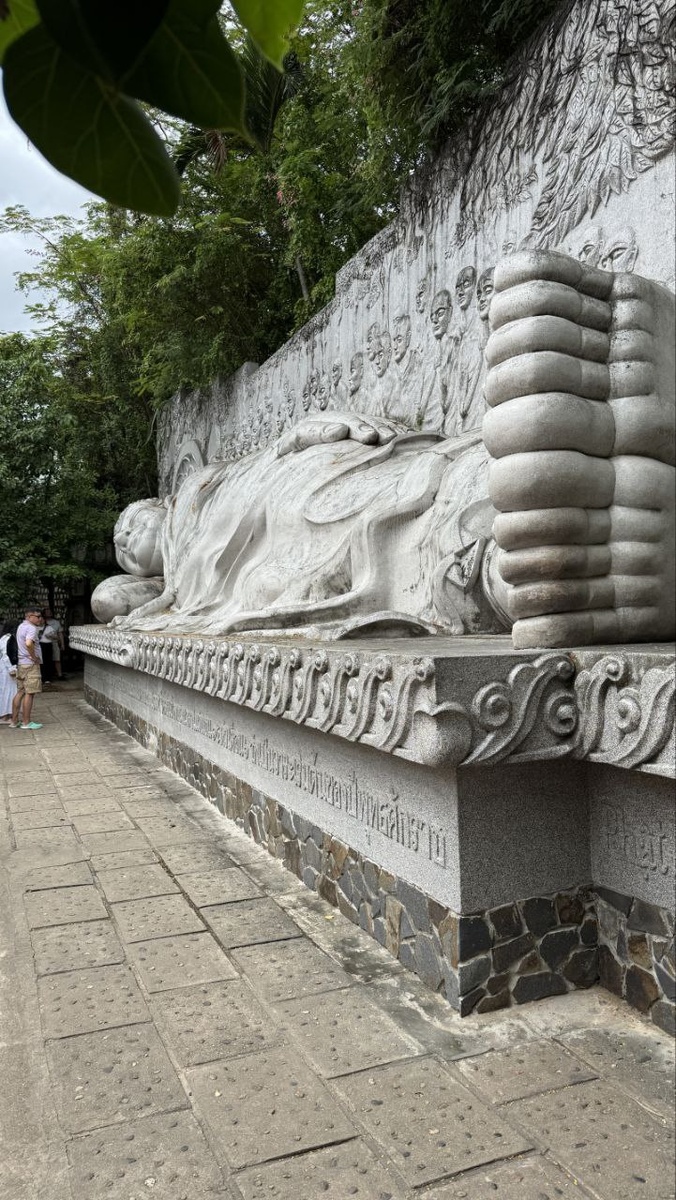 Сегодня расскажу о месте, где древние традиции встречаются с современной культурой, а виды, открывающиеся с высоты, остаются в памяти навсегда. Статуя Большого Будды — это одна из главных достопримечательностей Нячанга, которая дарит не только визуальное удовольствие, но и удивительное чувство покоя. Белоснежный Будда, возвышающийся на холме, был построен в 1963 году и стал символом духовности и гармонии. Статуя расположена на территории пагоды Лонгшон, которая была основана ещё в XIX веке. Это место почитается местными жителями и привлекает туристов со всего мира. Чтобы добраться до статуи, нужно преодолеть 150 ступеней. По пути вы встретите: Когда вы поднимаетесь наверх, перед вами открывается величественная фигура Будды, окружённая статуями монахов. Атмосфера здесь настолько умиротворяющая, что хочется задержаться подольше. Верхняя площадка предлагает один из лучших видов на город. Море, горы и городские огни создают захватывающую картину, особенно на закате. Пагод