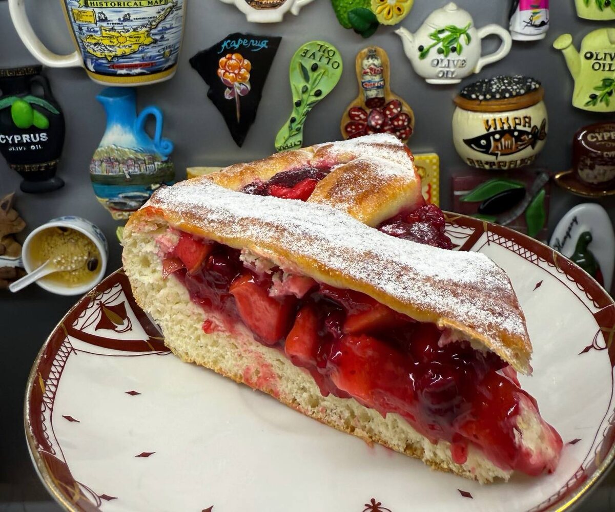 Ароматный пирог с огромным количеством начинки. Ингредиенты для теста: • молоко 130 мл • сливочное масло 40 гр • сахар 70 гр • яйцо 1 шт • соль щепотка • дрожжи сухие 5 гр • мука 300-350 гр • желток для смазывания Для начинки: • яблоки 3 средних • брусника 400 гр • крахмал кукурузный 40 гр • сахар 200 гр • сливочное масло 25 гр Тесто я заводила безопарным способом. Для ускорения процесса можно сделать опару. В тёплое молоко я ввела растопленное сливочное масло, яйцо, дрожжи, сахар, соль и муку в несколько приемов. Тесто получается липковатым. Так и должно быть. Если добавить больше муки, изделие получится твёрдым. Тесто поставила подниматься в теплом месте. Для начинки нарезала яблоки небольшим кубиком, переложила в сковородку, добавила сахар и сливочное масло. Начала прогревать на среднем огне. Как только яблоки пустили сок добавила бруснику. Потомила все вместе минут 5, сверху равномерно посыпала крахмалом. Постоянно помешивая кипятила массу около 3 минут. Она непло