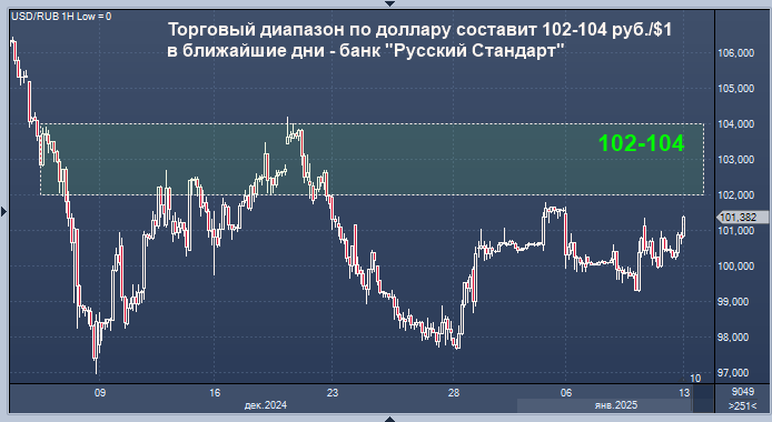 Торговый диапазон по доллару составит 102-104 руб./$1 в ближайшие дни - банк "Русский Стандарт"