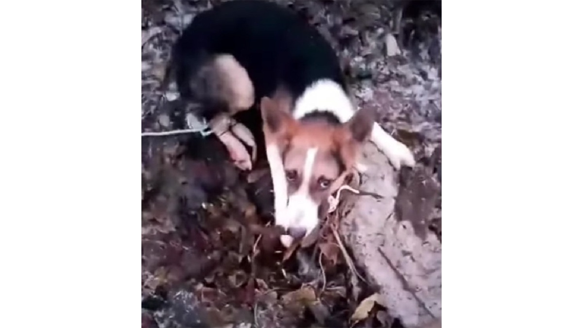 На Сахалине спасли собаку, привязанную к бревну на пляже