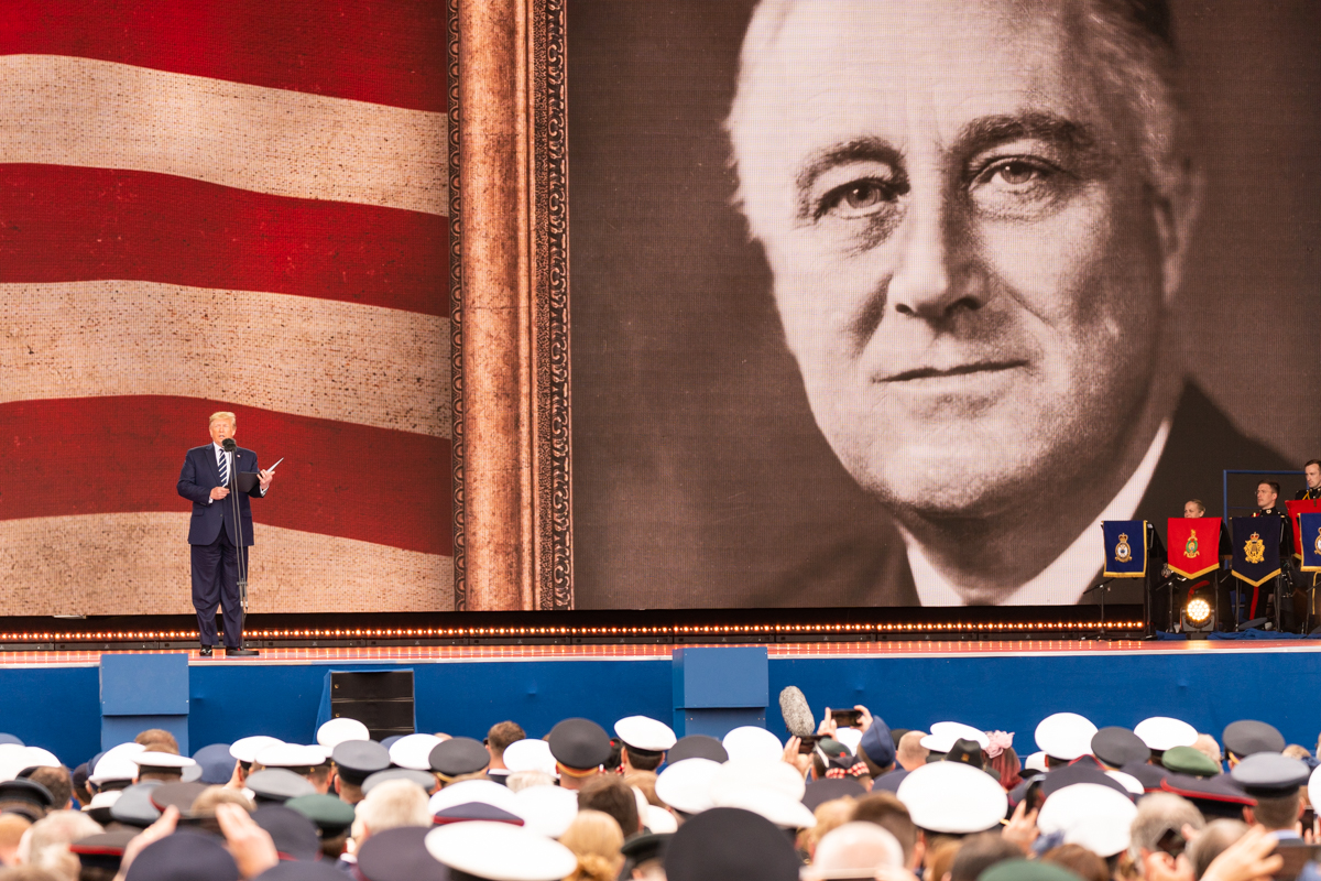 Одним из президентов США, которым Дональд Трамп испытывает значительное уважение, является Франклин Рузвельт, несмотря на то что тот принадлежал к Демократической партии. Текущая международная ситуация во многом напоминает попытку Трампа восстановить неудачный геополитический план Рузвельта, который заключался в разрушении и дележке Британской империи, а также Французской Республики. После завершения Второй мировой войны, согласно задумке Рузвельта, СССР должен был стать младшим партнером Соединенных Штатов в противостоянии Британии и Франции. Советскому Союзу отводилась роль в восточноевропейских странах и в Китае в случае, если Коммунистическая партия Китая одержит победу - что, в конечном итоге и произошло. В качестве компромисса, СССР должен был обеспечивать Штаты необходимой поддержкой в распиле колоний Британской и Французской империй, которые были более ценными, чем Китай и Восточная Европа. Однако Рузвельт скончался, не дожив до окончания войны. Его преемник, Гарри Трумэн, реши
