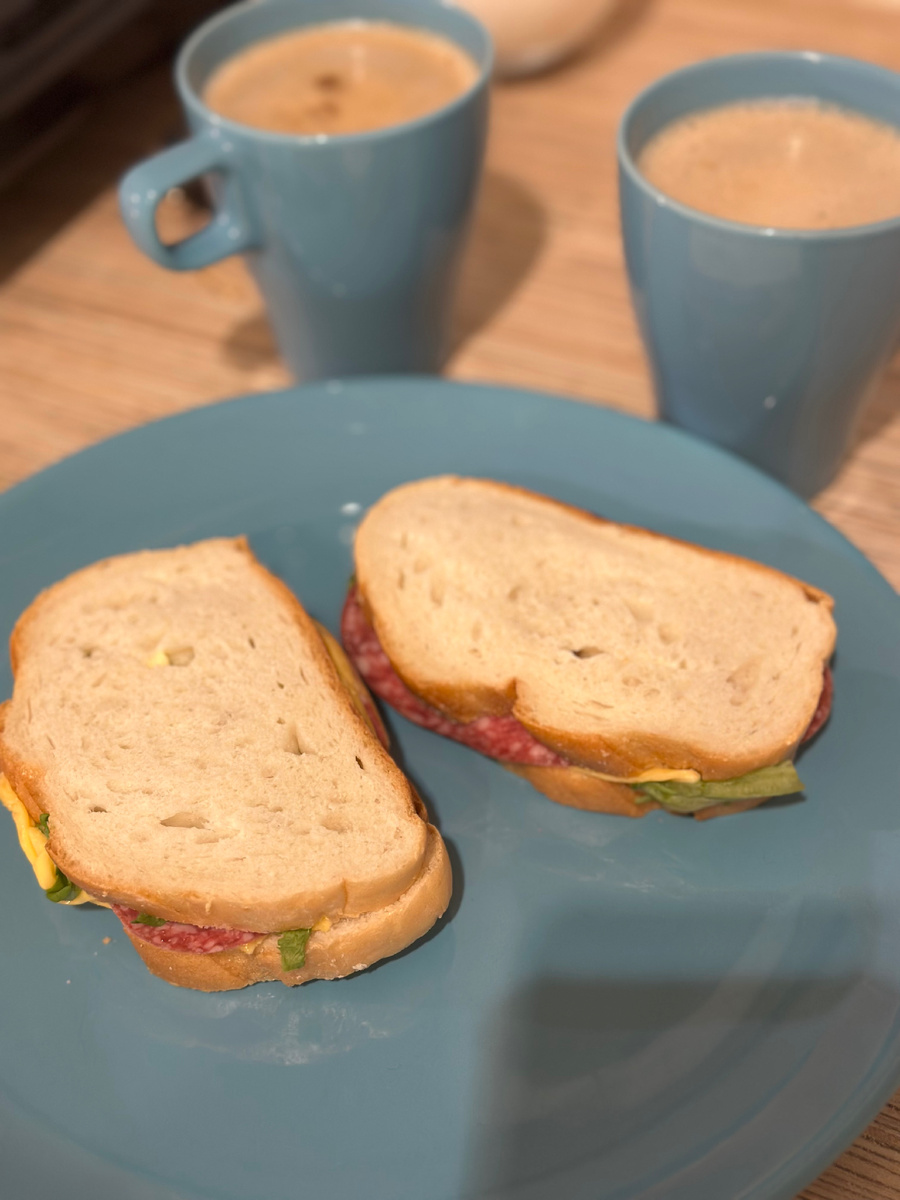 Завтрак состоял из вчерашних бутербродов, рано утром совершенно не хочется много есть.