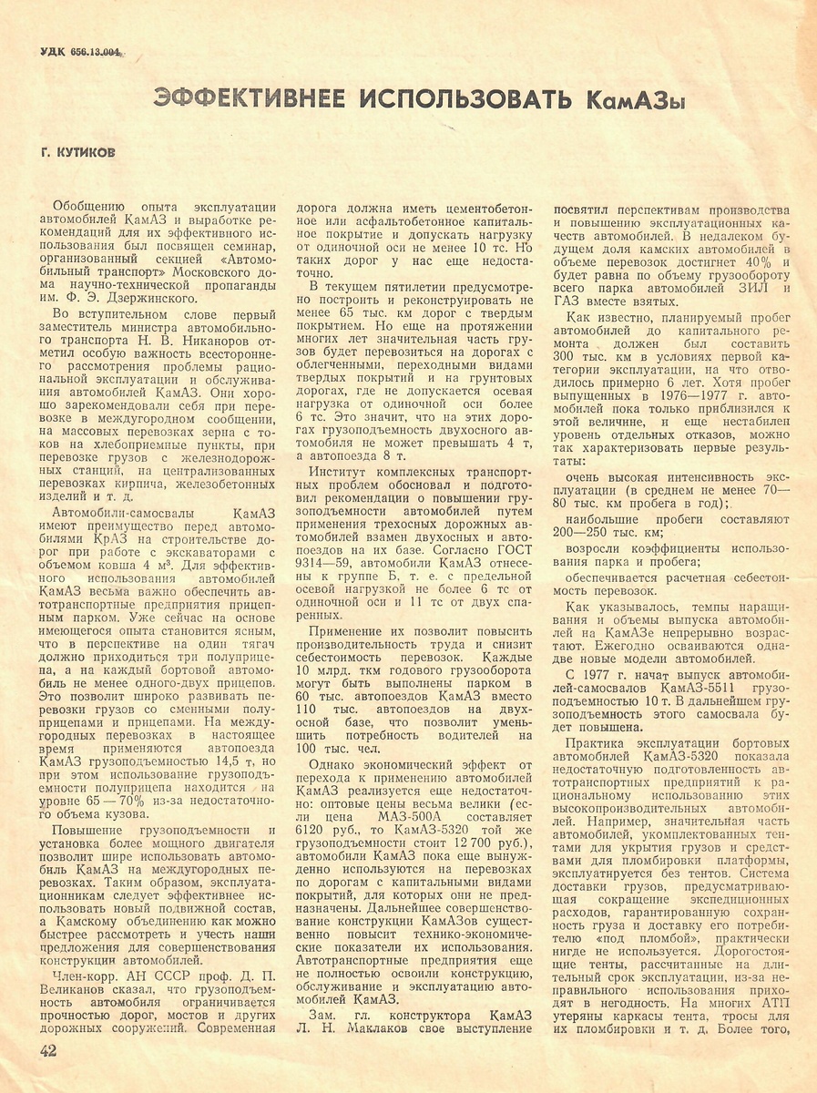 В продолжении темы, начатой здесь - https://dzen.ru/a/Z2AjAJ4sHEmz4NjL, сегодня хочу вам показать ещё несколько документов. Внизу статья из журнала «Автомобильный транспорт» №1 за 1979 год рассказывает о том, как себя зарекомендовали камские грузовики за 2 с половиной года использования в народном хозяйстве СССР. В статье из газеты «Советская Россия» от 3 мая 1980 года Тараканов Г. – инженер министерства автомобильного транспорта РСФСР провёл анализ простоя автомобилей КАМАЗ по различным техническим неисправностям. Внизу справка об уровне надёжности грузовых автомобилей КАМАЗ, составленная в июле 1983 года. И, наконец, посмотрите список мероприятий по повышению качества, надёжности и ресурса автомобилей КАМАЗ.