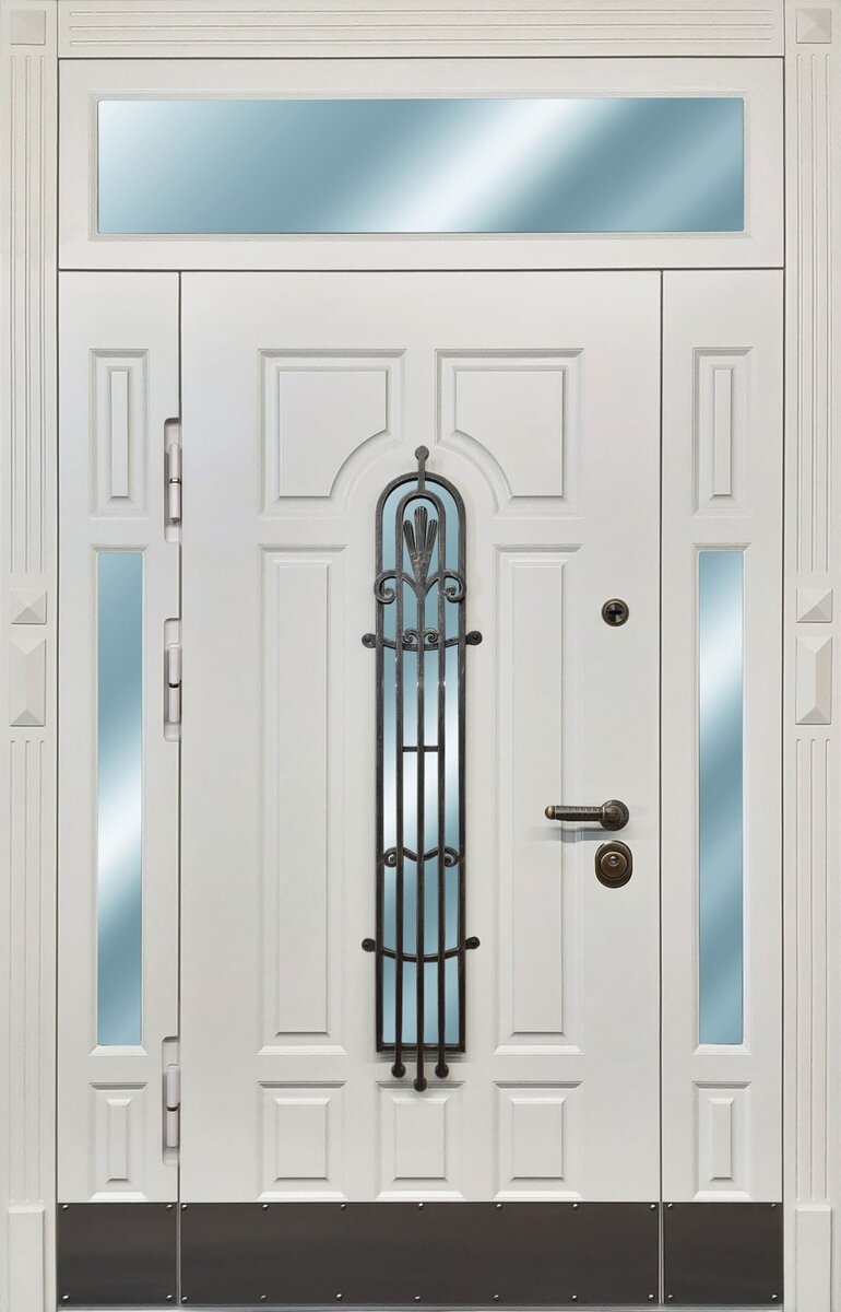 Кованые элементы придают двери шарм и элегантность, а резьба создает эффектный и роскошный вид. Декоративные накладки, ручки и замки из нержавеющей стали или латуни подчеркивают статус владельца, завершая гармоничный образ.