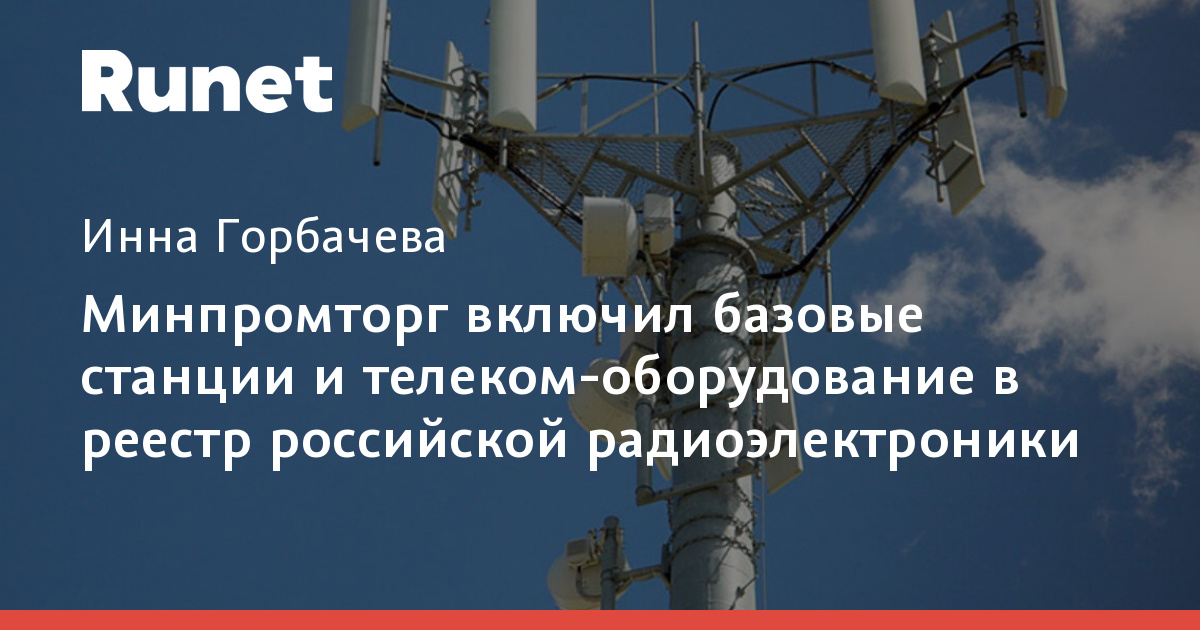 Минпромторг включил базовые станции и другое телеком-оборудование в реестр российской радиоэлектроники, распространив на их производителей льготы и возможности участия в госзакупках, сообщает «Коммерсантъ» со ссылкой на приказ министерства, подписанный 27 декабря. «Для включения оборудования в реестр и получения преференций на рынке госзаказа производителю достаточно направить документы в Минпромторг и пройти экспертизу межотраслевого экспертного совета», — указала газета со ссылкой на министерство. Экспертная оценка телеком-оборудования будет действовать три года вместо одного. Среди оборудования, признанного российским и включенного в реестр, значатся базовые станции компании «Иртея» (совместное предприятие МТС и фонда «Передовые технологии»), коммутаторы «КНС Групп» (Yadro) и точки доступа «Аквариус». В будущем планируется ввести балльные критерии оценки «отечественности», которые будут учитывать использование российских компонентов. В Минцифры заверили, что новая процедура «не повл