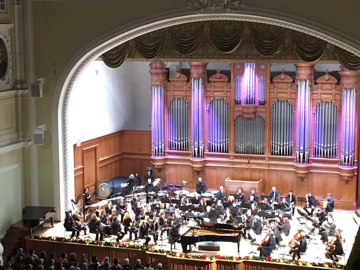 В Большом зале Московской консерватории имени П. И. Чайковского мы были в преддверии Старого Нового года на вечернем концерте симфонического оркестра "Новая Россия". Солировал на концерте пианист Филипп Копачевский - лауреат международных конкурсов, который приобрёл популярность в разных странах, несмотря на свою молодость - он 1990 года рождения. Дирижировал оркестром ещё более молодой выпускник консерватории имени П. И. Чайковского - дирижёр Иван Никифорчин 1995 года рождения - основатель, художественный руководитель и главный дирижёр камерной капеллы «Академия Русской Музыки». Иван Никифорчин часто выступает с разными оркестровыми коллективами страны, в том числе и с симфоническим оркестром "Новая Россия", которым с 2002 года руководит прославленный российский альтист и дирижёр Юрий Башмет. Он, как главный дирижёр оркестра, тоже присутствовал на концерте, и выходил на поклон к публике.