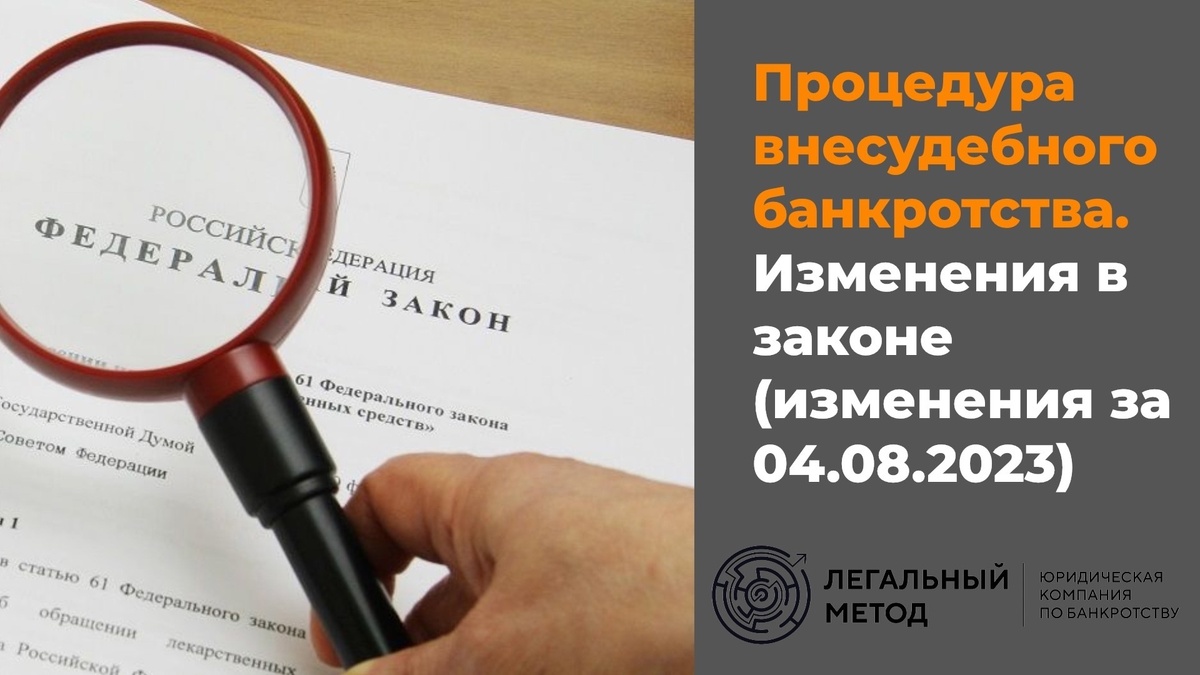 Процедура внесудебного банкротства. Изменения в законе (изменения за 04.08.2023)