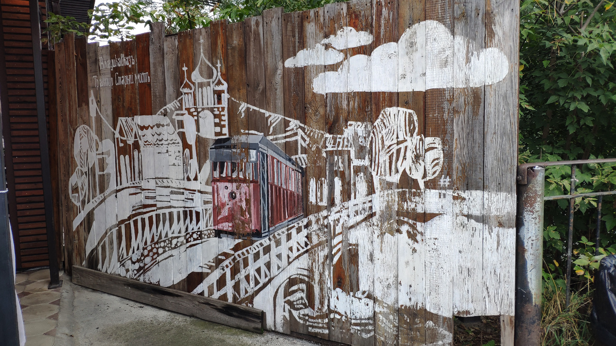Предыдущая часть: https://dzen.ru/a/Z4DaxZh03lZ17i4c Около трамвайного моста вот такое граффити А вот трамвайный мост в реале. В 1903 году во Владикавказе рядом с Деревянным мостом был возведён первый в России железобетонный мост для трамвайного движения. 3 (16) августа 1904 года состоялось торжественное открытие движения трамвая в городе: «3 августа 1904 года при огромном стечении горожан, под перезвон церковных колоколов, первый трамвай вышел из депо, пересек выстроенный для него мост и двинулся по маршруту.» В 1936 году, в связи с реконструкцией трамвайной сети, движение трамваев через мост было прекращено. С этого времени мост используется только для пешеходного движения. В настоящее время мост находится в аварийном состоянии и требует реконструкции. Вот старое фото: Граффити. Вроде бы это Сосланбек Едзиев.