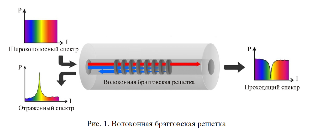 Волоконно-оптические датчики с брэгговскими решетками (ВБР) представляют собой инновационное решение для измерения физических величин. В данной статье мы рассмотрим принцип работы таких датчиков, их преимущества и области применения. Чувствительные элементы ВБР-датчиков представляют собой волоконные брэгговские решетки (рис. 1). Эти решетки записываются в оптическом волокне с помощью ультрафиолетового лазера и представляют собой участок световода с периодическим изменением показателя преломления вдоль оси. ВБР каждого датчика отражает свет определенной длины волны с шириной спектра примерно 0,2 нм. При воздействии механических нагрузок или изменений температуры изменяются период и показатель преломления решетки. Это приводит к смещению длины волны отраженного света. Измеряя это смещение, можно определить относительную деформацию и изменение температуры. Для разделения температурных и механических воздействий применяют две решетки: одна из них изолирована от механических воздействий и ф