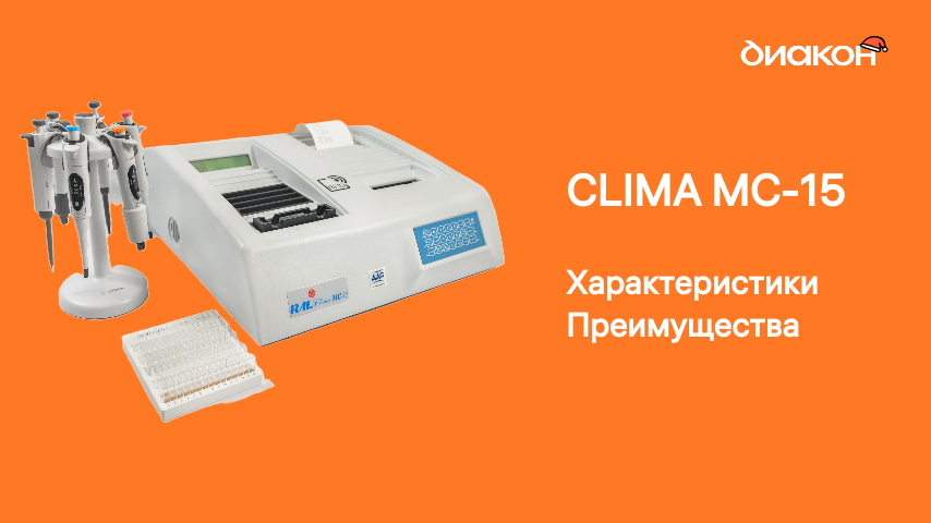 Сlima MC-15 и Clima MC-15 со сканером радиочастотной метки (RFID) - высокопроизводительные полуавтоматические анализаторы для проведения широкого спектра биохимических исследований методами абсорбции и иммунотурбидиметрии. В сочетании с высокоточными реагентами ДДС приборы представляют собой полноценную лабораторную аналитическую систему. Подходит для лабораторий с потоком до 50 человек в день, у которых нет возможности или необходимости в приобретении автоматического биохимического анализатора. Работа на анализаторе осуществляется с помощью мультикюветных кассет, состоящих из 15 двухсекционных кювет, каждая из кювет имеет 2 ячейки: малого объема - для образца, большего объема - для реагента. Анализатор Clima MC-15 может использоваться как основной, так и в качестве подмены автоматическим биохимическим системам в экстренных лабораториях. Компактен, прост в обращении, не требует дополнительного оборудования. Производительность: 300 тестов в час — конечная точка, 200 тестов в час — кинет
