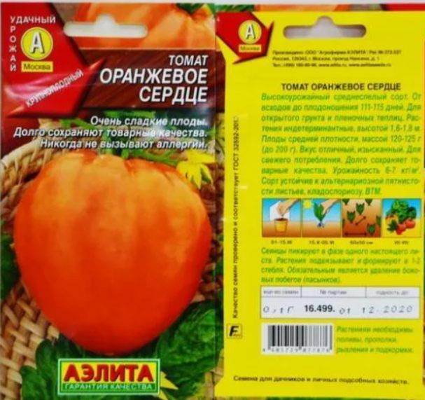 Томат сорта “Оранжевое сердце” – это среднеспелый индетерминантный сорт, выведенный российскими селекционерами. Срок созревания плодов составляет 110-115 дней. Кусты этого сорта умеренно раскидистые, высотой до 1,8 м, с простыми темно-зелеными листьями среднего размера.