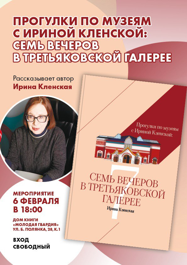 Ирина Кленская – известный журналист и радиоведущая, обладатель многих профессиональных наград. Недавно в издательстве «ИМ Медиа» вышла ее книга «Семь вечеров в Третьяковской галерее». Нам посчастливилось встретиться с автором и узнать, почему для нее так важны личные истории творцов. – Ирина, почему такое название книги? Почему «Семь вечеров»? – Было время, когда я больше всего любила приходить в музеи перед закрытием. Я часто уходила самая последняя. Вот уже все ушли, и я бегу-бегу скорее, чтобы уйти. И в Эрмитаже, и в Третьяковке есть такие дни, когда поздно можно прийти. Я жду этого момента – когда уже людей нет, уже залы пустые, когда еще все-таки есть свет, но его уже начинают приглушать. Поверьте, попробуйте, возникает состояние удивительное. И вдруг замечаешь, что лица с картин на тебя по-другому смотрят. Я не мистик, но мне очень нравится эта игра. Например, в зале Рокотова я вдруг ощутила совершенно ясный и очень твердый женский взгляд – Александры Струйской. Я вдруг поняла,