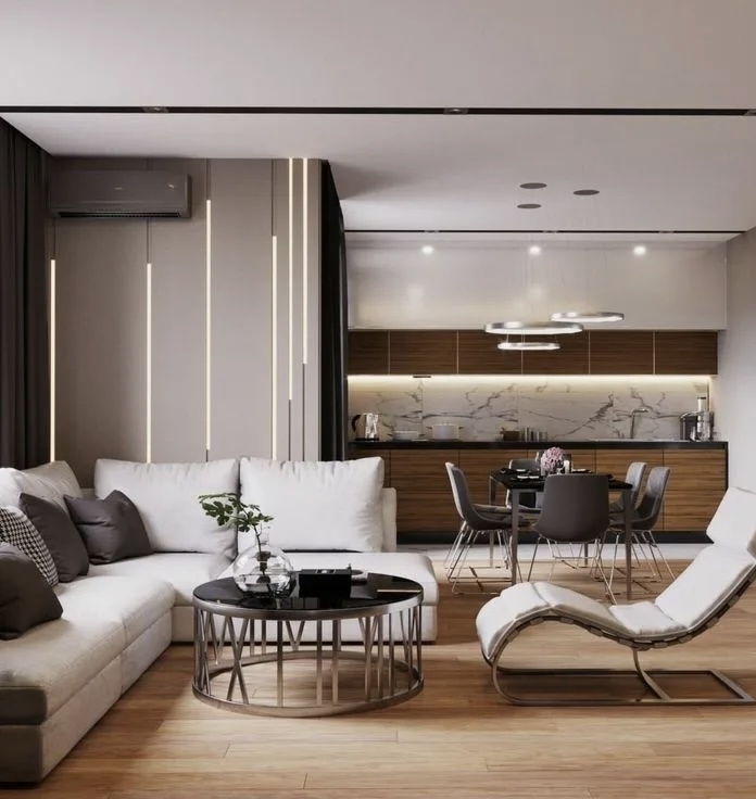 - Комплект визуализаций интерьера, который позволяет заранее увидеть, как будет выглядеть квартиры после завершения работ: от освещения до расстановки мебели.