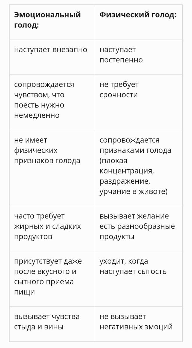 Питание – одна из базовых, то есть жизненно необходимых потребностей человека. Питаться можно очень по-разному. В зависимости от воспитания, региона проживания, культурного и экономического слоя у каждого человека формируются индивидуальные привычки в питании. Порой они бывают очень вредные. Например, есть такое понятие как эмоциональное питание. Это питание под влиянием негативных эмоций, цель которого заключается в том, чтобы избавиться от неприятных чувств и ощущений или временно их приглушить. Как отличить эмоциональный голод от физического? Представьте какую-нибудь еду, которую вы не очень любите. Например, вы прохладно относитесь к гречке. Так вот, если вы представляете тарелку гречневой каши и понимаете, что готовы ее съесть без соли или сахара, значит вы действительно голодны! Это физический голод. Скорее всего, вы ощущаете его в желудке, у вас снизилась концентрация внимания, появилась раздражительность. Нужно поесть. А если вы представляете тарелку гречки и чувствуете отторж