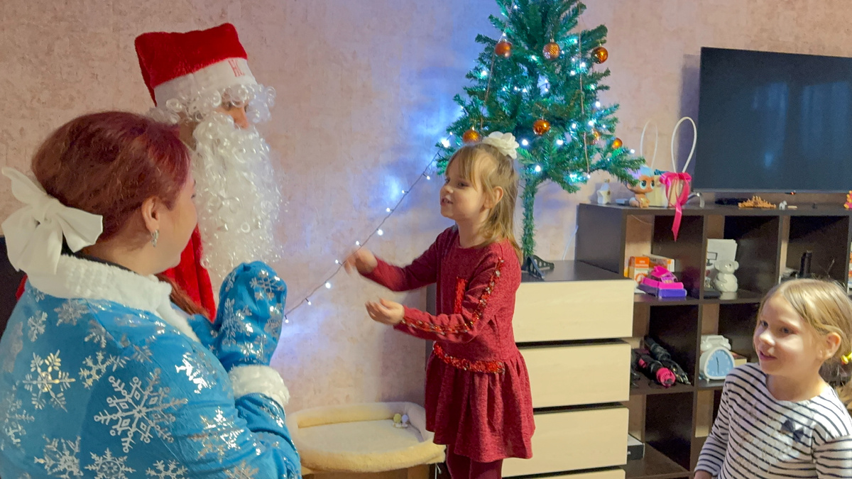 Лера с мужем и двумя детьми бежала из Херсона. Она перенесла тяжелую болезнь на фоне стресса и теперь прикована к кровати. Ей требуется серьёзная реабилитация. У мужа нет гражданства. Были высокие риски, что дети окажутся в госучреждении. Пока их удалось отстоять. Усилиями фондов семье нашли новое жильё, без клопов и с более комфортными условиями. Постепенно решаются и другие проблемы. Родителям и детям был очень нужен праздник, чтобы хотя бы на короткое время забыть об ужасах пережитого и страхе перед будущим. И этот праздник им подарили перед самым Новым годом. Дед мороз и Снегурочка принесли детям подарки, а взрослым добрые пожелания и поддержку.