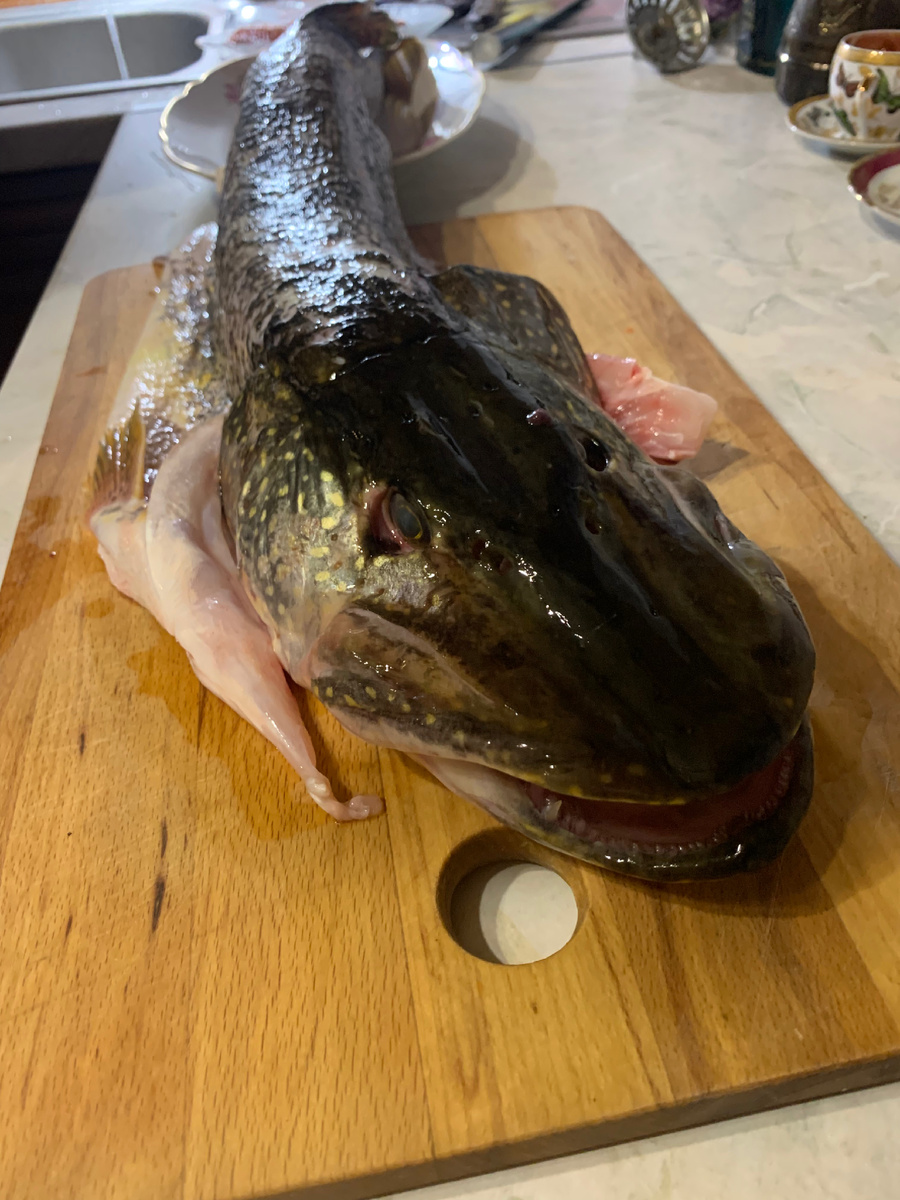 Захожу на кухню. Вижу большой сюрприз в небольшой ёмкости с водой - щука ! - Большая ! Вот такая 🤞 Поступила команда : - почистить приготовить ! Последовал убедительный ответ : - мой маникюр дороже 🤞. В кратчайшее время щука была качественно почищена и разделана. Решили приготовить голову, запечь в фольге в духовке. Остальные части щуки положила в пакеты и успешно отправила в морозилку. Голову щуки (обязательно удалить жабры) посолить, сдобрить приправой для рыбы. Приготовить соус : - майонез, чеснок, посолить, приправа для рыбы. И хорошо смазать щучью голову соусом. Лук (1 шт. ) порезать полукольцами. Противень застелить фольгой. Подготовленную щучью голову выложить на подушку из лука. Сверху положить кружочки лимона. Фольгу аккуратно завернуть, чтоб при запекание сок не вытекал, и поставить в разогретую духовку 200 градусов на 20 минут. По истечении времени фольгу раскрыть и оставить ещё запекаться 10 минут, чтоб блюдо немного подрумянилось. Та- дам ! Готово ! Щучья голова