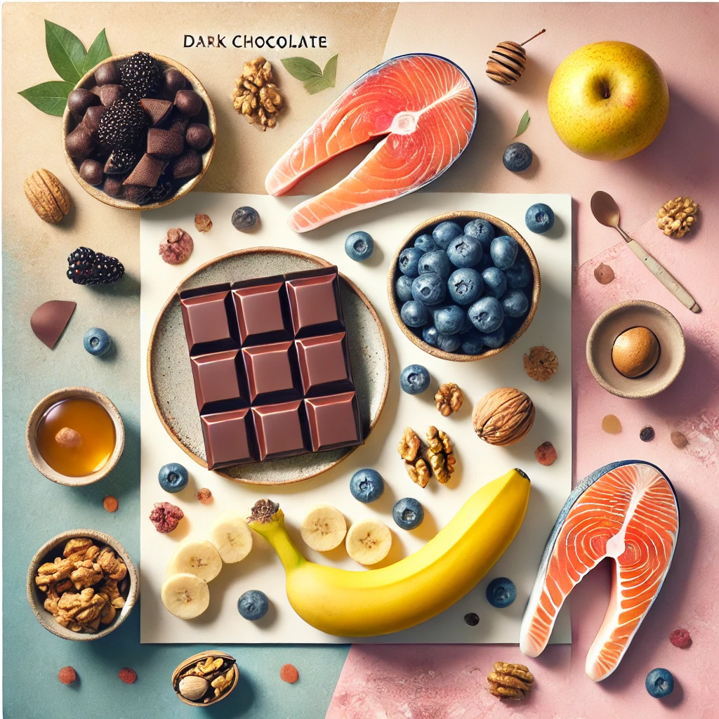 Еда — это не только источник энергии, но и мощный инструмент, который способен влиять на наше настроение. Некоторые продукты содержат вещества, которые стимулируют выработку гормонов счастья и помогают справляться с плохим настроением. Разберёмся, какие из них стоит включить в рацион, чтобы быть бодрыми и счастливыми. 1. Шоколад — натуральный антидепрессант Чёрный шоколад богат магнием и триптофаном — веществами, которые способствуют выработке серотонина, известного как “гормон счастья”. Кроме того, какао содержит антиоксиданты, улучшающие кровообращение и работу мозга. Всего пару кусочков чёрного шоколада способны поднять настроение и зарядить энергией. 2. Орехи и семена Орехи, такие как грецкие и миндаль, богаты полезными жирами и витамином Е, который помогает бороться со стрессом. Семена чиа и льна содержат омега-3 жирные кислоты, которые снижают уровень тревожности и поддерживают эмоциональное равновесие. 3. Бананы — фрукт для улыбки Бананы — это не только удобный перекус, но и ист