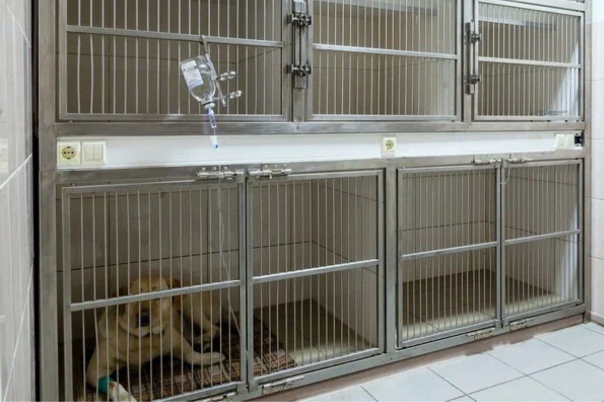 - После транспортировки из хирургического отделения животное размещается в индивидуальном боксе. В этот момент питомец еще находится в наркозе, то есть погружен в глубокий сон. Он не может самостоятельно поддерживать нормальную температуру тела и давление, а также контролировать частоту дыхательных движений. Для обеспечения нормальной проходимости дыхательных путей у животного установлена эндотрахеальная трубка.