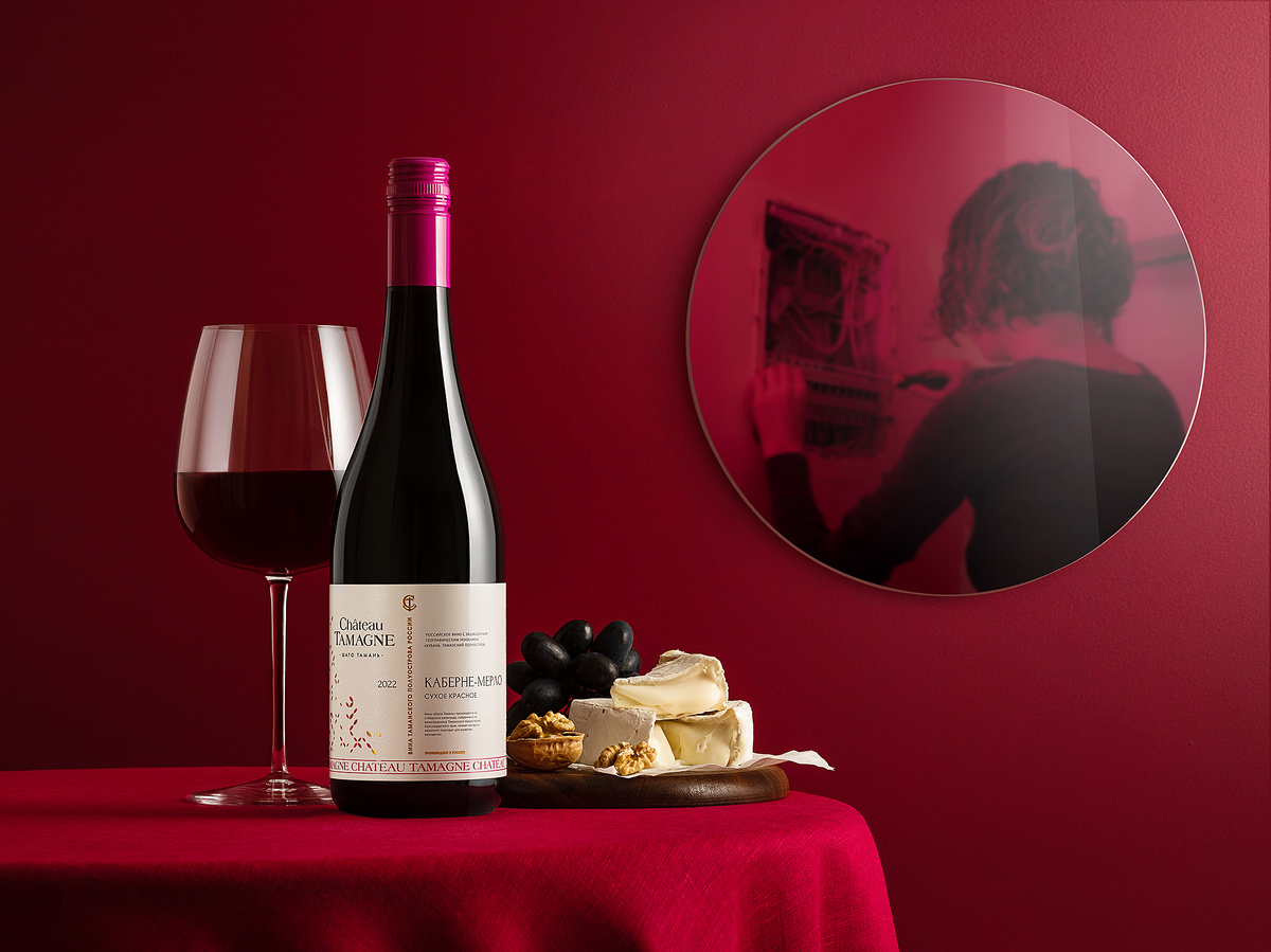 Этот снимок рассказывает о контрасте между работой и отдыхом. Бутылка красного вина Château Tamagne, бокал, виноград, сыр и орехи создают ощущение уюта и расслабленного вечера. Но в зеркале на заднем плане видно человека за работой с электрикой — тонкий намёк на усилия, которые стоят за такими моментами. Это стильный пример фуд-фотографии и фуд-стайлинга, который передаёт историю труда и наслаждения. Светлый и лёгкий кадр, идеально передающий атмосферу свежести. Белое вино Sauvignon Blanc Château Tamagne представлено с аппетитной закуской из креветок и овощей. За этим спокойствием скрывается и другая сторона: в зеркале видно сварщика за работой. Этот снимок объединяет труд и удовольствие, показывая, как можно находить баланс в жизни. Тёплый и домашний кадр, где розовое вино Château Tamagne сочетается с закуской из прошуто и рикотты. На заднем плане в зеркале мастер работает с деревом, напоминая о креативности и ручной работе. Этот снимок рассказывает историю о том, как труд создаёт осн