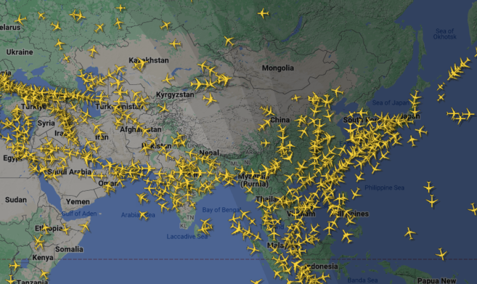 Достаточно одного взгляда на сервис Flightradar24, чтобы увидеть, что пассажирские самолеты избегают Гималайского региона и Тибета. На всей территории практически не осуществляются международные регулярные рейсы. Воздушное пространство над Тибетом и Гималаями всегда свободно от самолетов. Фото: flightradar24 Дело не в том, что современные самолеты не способны летать над высокими горными вершинами. Но если это не является абсолютно необходимым, то они ищут альтернативный маршрут. Причины этого в первую очередь можно объяснить аспектами безопасности. Тибет является исключением. Известно, что спорный горный регион контролируется Китаем. Там регулярно проводятся крупные военные учения, поэтому Китай открывает воздушное пространство над Тибетом для иностранных самолетов только в исключительных случаях. На южной окраине Тибетского нагорья простирается собственно Гималайский горный хребет протяженностью более 2300 километров — от Пакистана, Индии, Непала и Китая до Бутана и Мьянмы. Именно зде