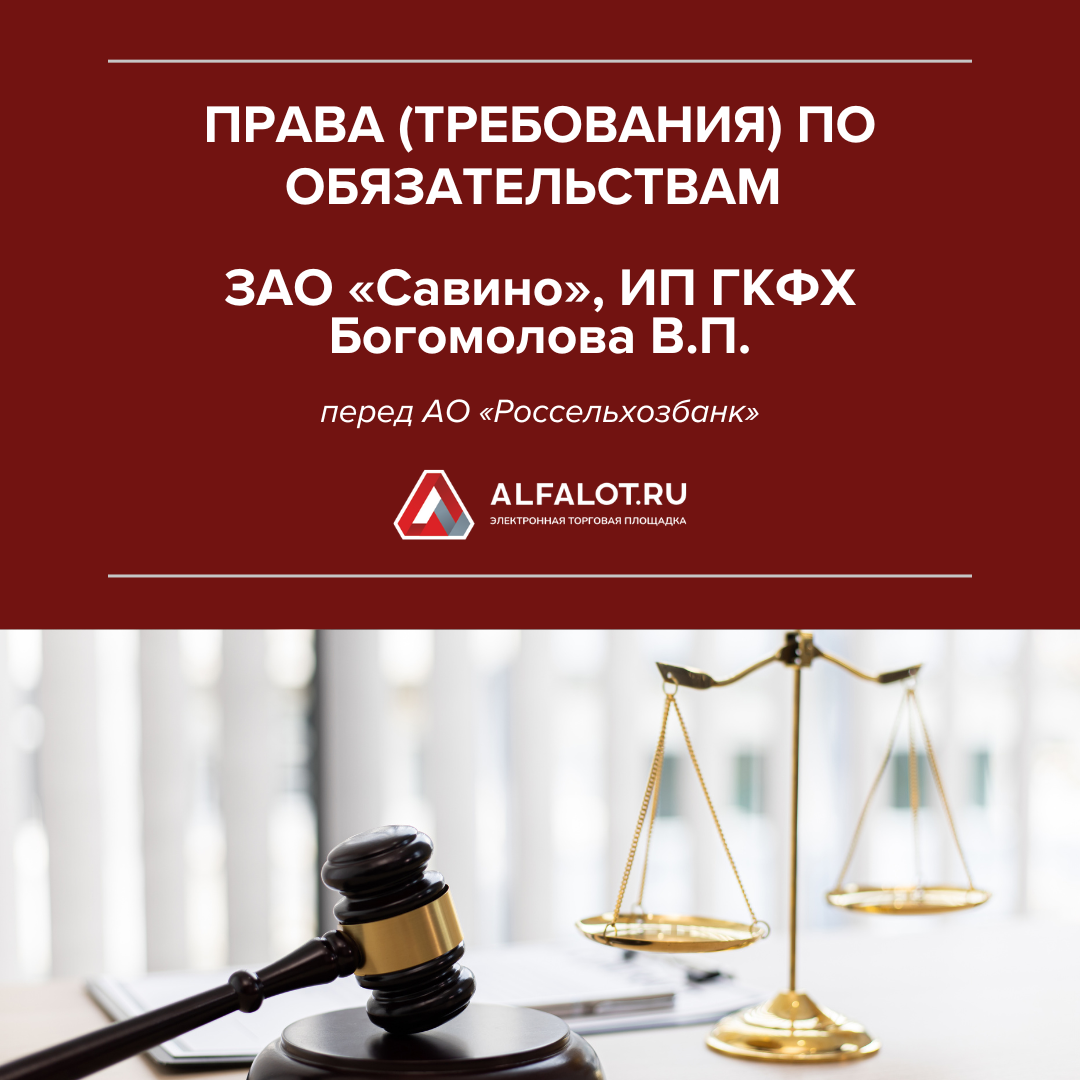 Права (требования) по обязательствам ЗАО «Савино», ИП ГКФХ Богомолова В.П.