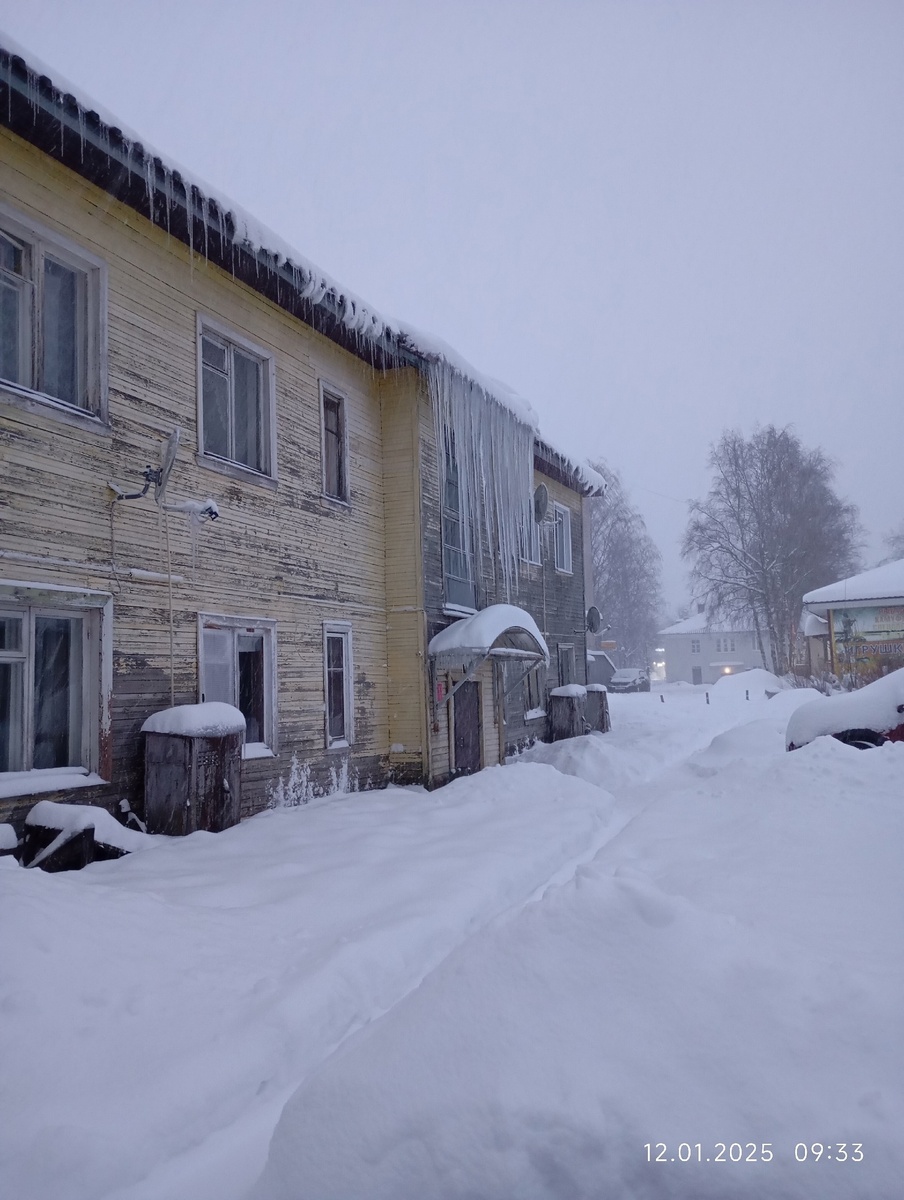 Жители Олонца обратились в открытом письме к управляющей компании, которая отвечает за уборку снега и сбивание сосулек с крыши дома по улице Ленина, 4. Пост и фотографии опубликовали в паблике Подслушано в Олонце | Олонец | Олонецкий район |.