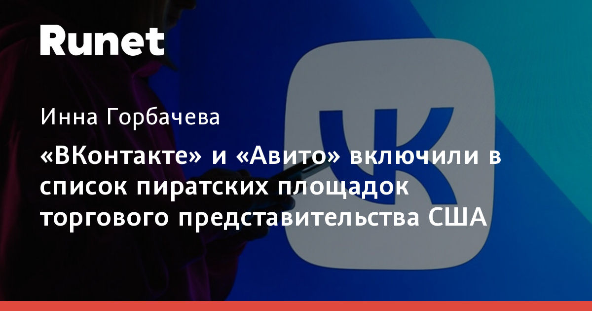 «ВКонтакте» и «Авито» включили в список пиратских площадок торгового представительства США