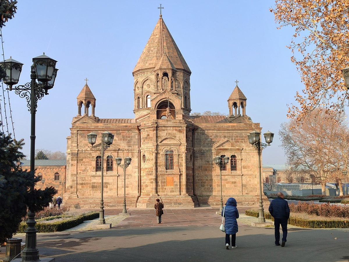 Эчмиадзинский собор — одна из самых важных достопримечательностей Армении. Самый первый христианский храм в мировой истории. В самой первой христианской стране в мире. В возведении храма и принятии христианства в Армении заслуга двух человек. Трдата, сына царя Хосрова, убитого парфянином Анаком. И Григория Просветителя, сына пафянина Анака, убившего царя Хосрова В то время армянское войско царя Хосрова ежегодно атаковало Персию. И весьма успешно. Что делать? Киллера послать. Парфянин Анак успешно выполнил заказ. В 252 году. Но и сам попался. Весь род его был уничтожен. Только малолетнего сына цареубийцы Григория, его кормилица успела вывезти в Малую Азию. Но и персы захватили Армению. Вырезали царскую семью. Только малолетнего сына царя Трдата уже его кормилица успела вывезти в Грецию. Тогда- территория Римской империи. Трдата взял на воспитание местный патриций Лициний. Дал образование. К спорту приобщил. Юный армянин даже стал олимпийским чемпионом. По борьбе. Как бы сложилась его