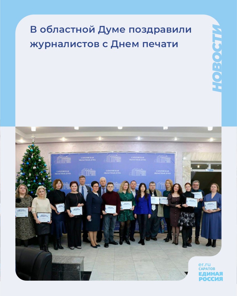 📖Подведены итоги конкурса на лучшее освещение деятельности Саратовской областной Думы в СМИ в 2024 году. Церемония награждения состоялась сегодня, в День печати. Участие в ней приняли депутаты регионального парламента и журналисты. Председатель областной Думы Алексей Антонов поблагодарил журналистов за плодотворное сотрудничество, гражданскую позицию и объективность, а также поздравил с профессиональным праздником. 💬«Вы не просто освещаете события и делитесь новостями, вы своими работами, репортажами обеспечиваете обратную связь, которая помогает депутатам своевременно принимать необходимые решения в интересах людей», - отметил спикер. Заместитель председателя областной Думы Ирина Колесникова, возглавляющая комитет по бюджету, налогам и собственности, отметила, что на журналистах местных СМИ лежит большая ответственность – доносить до читателей не только правдивую, но и понятную информацию о людях, которых они хорошо знают. Роман Чуйченко, председатель комитета по информационно