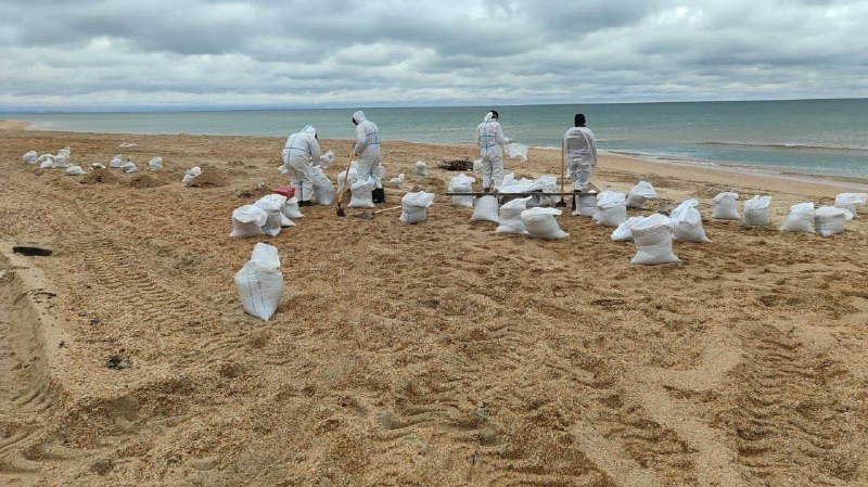 в области пляжа «Жара» и на Бугазской косе работали более 150 волонтеров. Они собрали 467 мешков песка с мазутом. Также в уборке участвовало 12 единиц тяжелой техники.