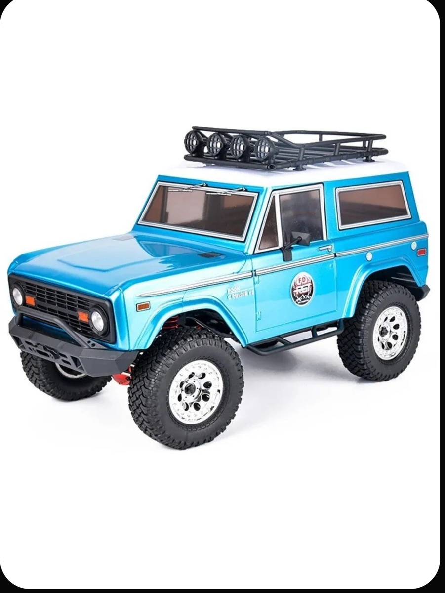 Однажды на Озоне попалась шась от фирмы RGT с кузовом ford bronco1974 года в синем цвете. Доставили в пвз быстро из Китая. Отмечу, что мне, после масштаба 1/12 было не привычно управлять 1/10, даже не большим. Мое конструкторское нутро требовало доработок и так постепенно было заменено: мотор 390й>550й injora>бк 14 пл. 9imod, регулятор с 3в1 от flaySkay> hb1060> hb102b для бк систем на 60А, КП пластиковая на металлическую под крупные моторы, мосты на железные от injora копия акс 1 и т.д. Кузов постепенно растрескался (ну я же учился😝 управлять). Купил новый оригинальный не крашеный, красил самостоятельно 😎 по задумке: внутри серебро под сталь и снаружи бежевой. Чтобы при повреждении внешнего слоя краски был виден "металл". Попробовал воссоздать эффект старения, почти получилось. Так же изменил место рулевой сервы, перенеся ее на шась с моста, что позволило занизить модель. Место аккумулятора сместил к рулевой серве под капот, тем самым сместив ЦТ (центр тяжести), получилось п