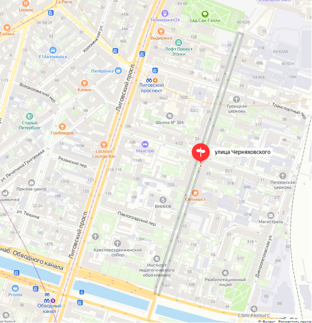 Улица Черняховского имеет в длину только 840 метров при ширине почти 30 метров, проходит параллельно Лиговскому проспекту от Обводного канала, завершаясь тупиком около сада Сан-Галли. Сейчас на улице Черняховского чуть более 50 домов, большая часть зданий построены в царское время, разумеется это доходные дома. К общественным зданиям, построенным до 1917 года на нашей улице можно отнести только церкви и баню. Зато советская власть добавила 5 школьных зданий, детский сад, здание АТС, административное здание для тепловой компании. Высота домов не превышала 6-ти этажей. XXI век подарил улице 8-этажный дом. Посередине проходит бульвар. В целом, по нашей улице можно изучать историю государства и технического прогресса. Начнём с грустного. Гораздо меньше стало деревьев на улицах и во дворах. Ещё в ХХ веке носились с идеей соединить улицы Черняховского и Кременчугскую то ли тоннелем под, то ли мостом над ж.д.станцией. В ХХIвеке вернулись к этой идее, опять в Генеральном плане Санкт-Петербург