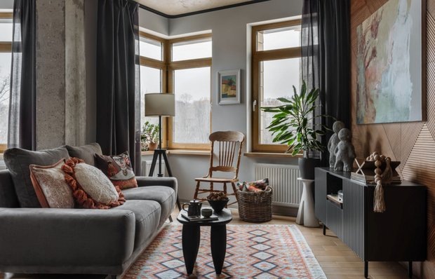 «Перекроили» планировку и создали комфортный интерьер с индивидуальными пространствами под разные задачи Как сделать трешку уютной и функциональной для двух творческих людей, где у каждого есть свой уголок для создания шедевров? Узнайте в нашем новом румтуре! Герой румтура: дизайнер и архитектор Марго Бабкина спроектировала интерьер этой квартиры для семьи художников — Марии Коржовой и Григория Пушкина. Кратко о квартире: трехкомнатная квартира находится в московской новостройке в «ЖК Лефортово». Нефункциональную и неудобную планировку от застройщика изменили: объединили кухню с гостиной и со столовой, обустроили изолированную спальню, мастерскую, совмещенный санузел и гардеробную. Оцените идеи по организации монохромной минималистичной кухни, в которой грамотно продумана эргономика, предусмотрено большое количество мест для хранения, а фартук выполнен из стекла. В результате перепланировки открыли потрясающую эркерную зону — при входе создается перспектива на всю квартиру и на вид из