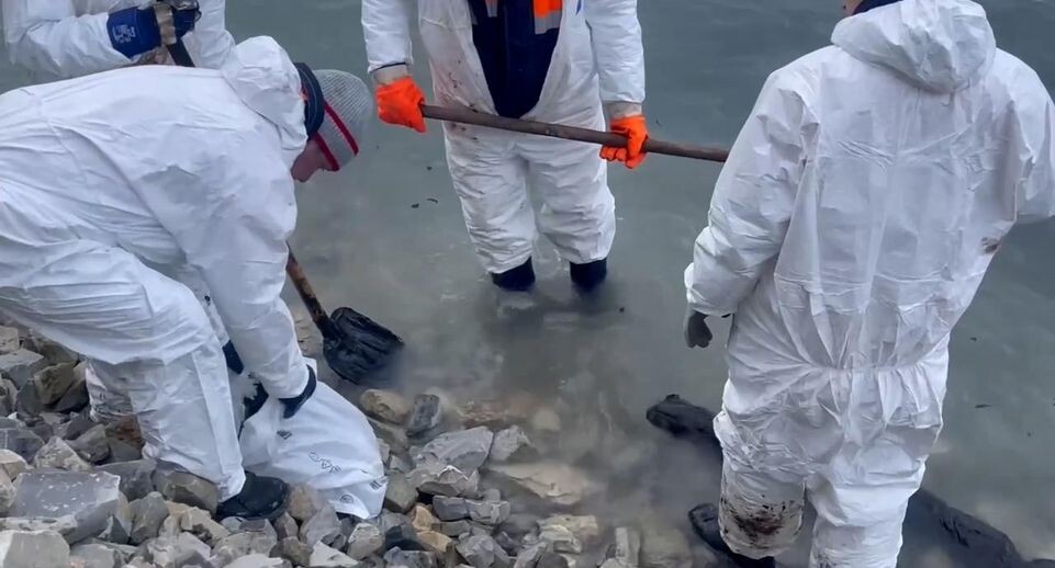 «Специалисты Морспасслужбы вдоль береговой линии собирают мазут рядом с кормой танкера „Волгонефть-239“. Небольшие полосы мазута у самого берега убирают вручную лопатами в мешки. Чтобы вытекший из судна нефтепродукт не расплывался по акватории, бонами подогнали к берегу», — отметили в пресс-службе.