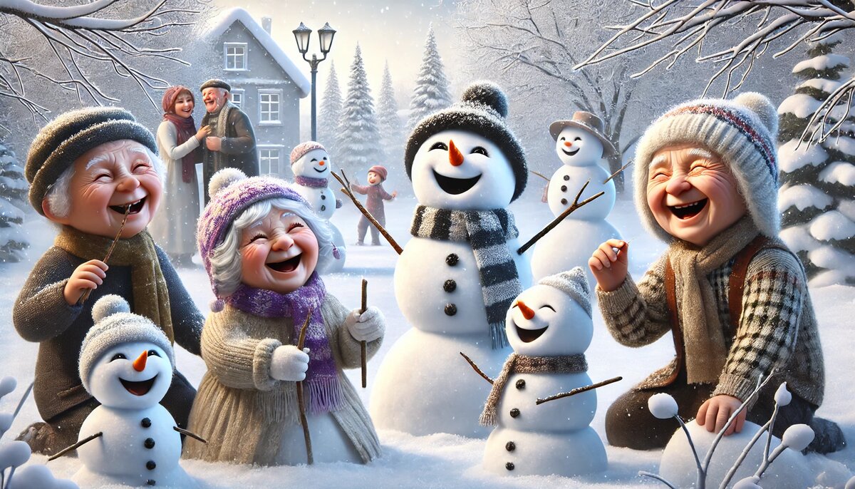 Дорогие мои, скажите, вот вы когда-нибудь задумывались, почему снеговики всегда улыбаются? Будь то снегопад или сильный мороз – на лице у них неизменно эта хитрая, чуть загадочная улыбка. Сегодня я, Галина, наконец-то раскрою эту снежную тайну, основанную на многолетних наблюдениях и житейской мудрости. Присаживайтесь, берите чашечку чая – история обещает быть тёплой, несмотря на снег и мороз! Всё началось после нашей традиционной зимней прогулки. В тот день мы с Люсей, Гришей и парой соседских детишек лепили снеговиков во дворе. Каждый из нас старался как мог: у Люси снеговик вышел стройный и гордый, у Гриши – лохматый, с ветками вместо рук, а у детей – какой-то странный и перекошенный. Но что удивительно: все они улыбались. – Галя, посмотри! Ну откуда у них всегда такие довольные рожицы? – удивилась Люся, пытаясь прикрепить угольки на место глаз своему снеговику.