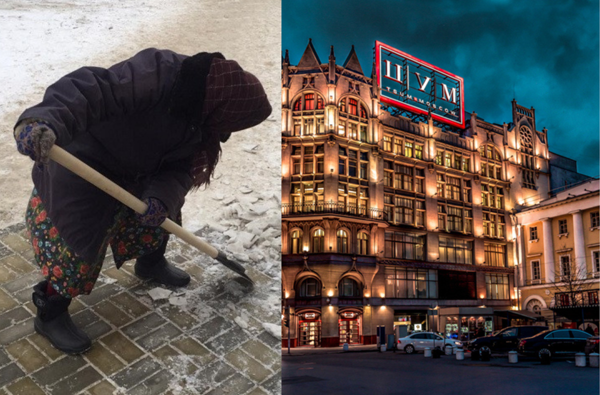 Не вся Россия — это Краснодарский край, где зимой часто стоит плюсовая температура. Зимы в России бывают снежные. Особенно в северных регионах. Снега, бывает, навалит столько, что его приходится разгребать лопатой. И коммунальным службам в мегаполисах, и простым россиянам, проживающим в деревнях. В общем, без лопаты ни туды и не сюды. Даже если ты живешь на маленькую пенсию, тебе может понадобиться лопата. Главное, с маленькой пенсией только в ЦУМ за лопатой не ходить. Российские СМИ облетела новость о лопатах в ЦУМе стоимостью 57 тысяч рублей за одну лопату. Это лопата американского люксового бренда Supreme, для уборки снега, изготовленная из алюминия и выкрашенная в красный цвет. И это не самый дорогой вариант в ЦУМе. Скажем, если вам нужна не лопата, а лопатка для торта, то в онлайн-магазине ЦУМа она встанет вам от 159 500 до 356 500 рублей. В общем, кому — советская лопата за 1 тысячу рублей или пластиковая за 100 рублей в обычных магазинах, а кому — люксовая за 57 тысяч рублей в