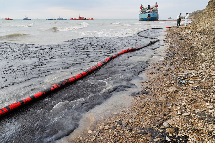 RUSSIA, KRASNODAR REGION - JANUARY 11, 2025: A boom contains surface oil in the village of Volna in an oil spill clean-up operation following the December 15 crash of the Volgoneft 212 and 239 oil tankers in the Kerch Strait. Pictured in the background is Volgoneft 239. Sergei Malgavko/TASS –ÓÒÒˡ. ‡ÒÌÓ‰‡ÒÍËÈ Í‡È. œÓÒÂÎÓÍ ¬ÓÎ̇. —ÓÚÛ‰ÌËÍË Ã◊— –ÓÒÒËË ‚Ó ‚ÂÏˇ ÎË͂ˉ‡ˆËË ÔÓÒΉÒÚ‚ËÈ ‚˚·ÓÒ‡ ÌÂÙÚÂÔÓ‰ÛÍÚÓ‚. Õ‡ ‰‡Î¸ÌÂÏ Ô·Ì ó Ú‡ÌÍ "¬Ó΄ÓÌÂÙÚ¸-239" Ë ÒÛ‰‡, ÍÓÚÓ˚ ۘ‡ÒÚ‚Û˛Ú ‚ ÎË͂ˉ‡ˆËË ‡‚‡ËË. —„ÂÈ Ã‡Î¸„‡‚ÍÓ/“¿—— Курортный сезон-2025 в Крыму напрямую зависит от результатов операции по подъему затонувших танкеров с мазутом в Керченском проливе. Только после их подъема можно трезво оценить сложившуюся ситуацию. Об этом в эфире «Россия 24» заявил глава Крыма Сергей Аксёнов, передает корреспондент «ПолитНавигатора». «Если уберём до курортного сезона, покажем в чистоте пляжи – будет всё нормально. Но, в любом случае, глобально эту проблему не решить, пока затонувшие суда не будут подн